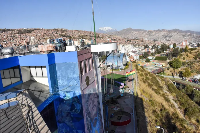 Entretanto, la simulación del fuego está formada con tela tornasolada. “Es importante destacar que el efecto final para verse en la noche será conseguido con la instalación de 10 reflectores que iluminarán los colores de la bandera paceña, rojo y verde. Asimismo, el borde de las estructuras del fuego tendrá luces tipo neón”, detalló.