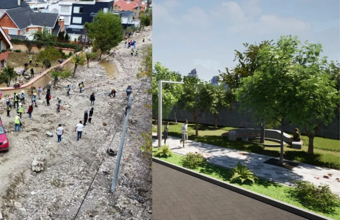 La Avenida Costanera de Achumani, antes vulnerable a desbordes, ahora está equipada con sistemas de drenaje eficientes. La reducción del ancho vehicular permitió ampliar las aceras y aumentar la cantidad de espacios verdes, generando un “microclima” que contribuirá a mitigar los efectos del cambio climático, según el secretario Municipal de Infraestructura Pública, Guilherme Tortato.