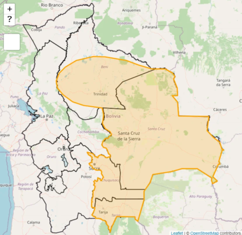 Afectará a las provincias: Andrés Ibañez, Warnes, Ichilo, Sara, Santiesteban, Chiquitos, Guarayos, Ñuflo De Chavez, Velasco, Angel Sandoval, German Busch y Cordillera. Asimismo, hay probabilidad de heladas en Vallegrande, Florida y Caballero