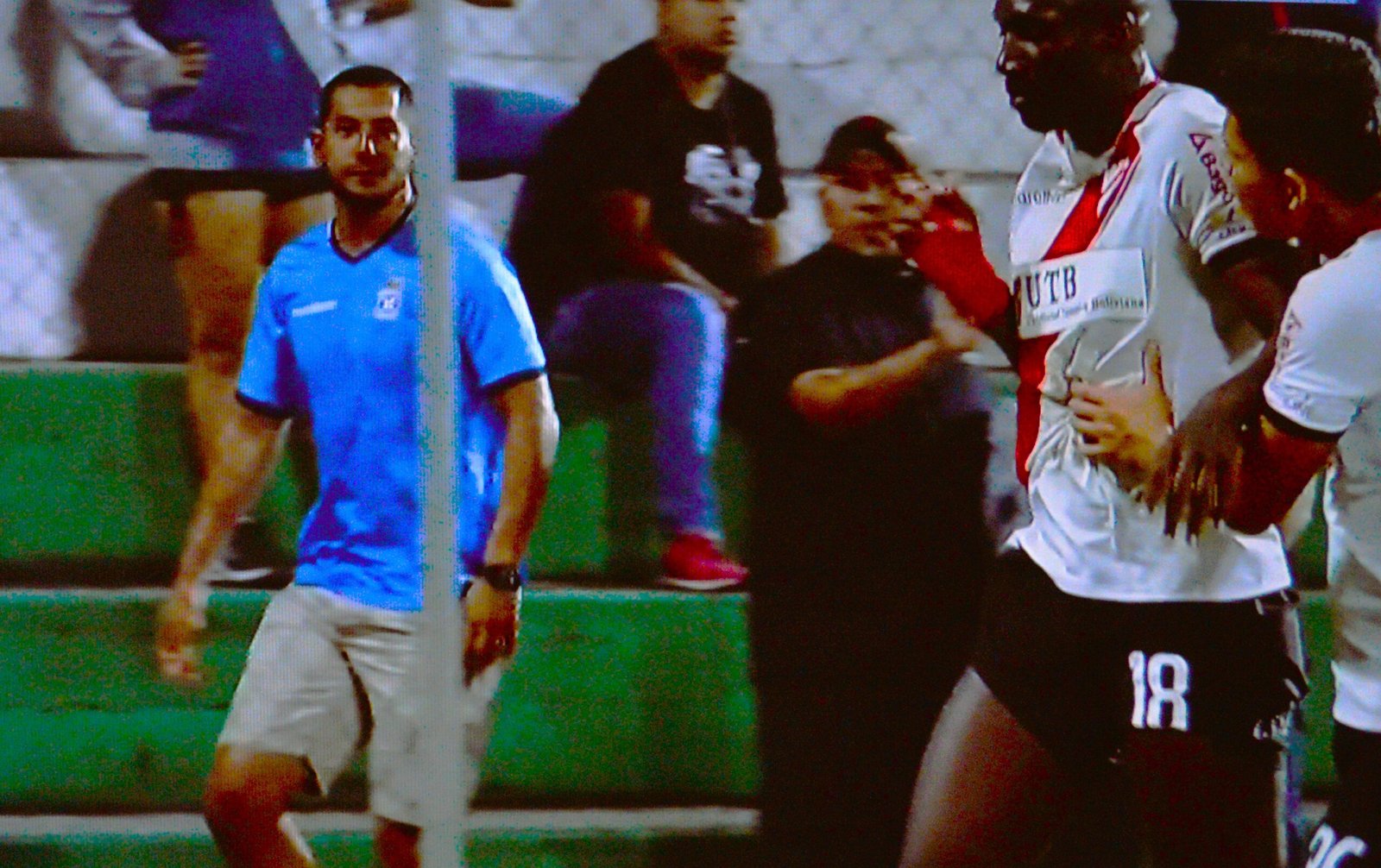 Se repente el fútbol se interrumpió casi al final, debido a los insultos racistas y xenofobia de los hinchas de Real Santa Cruz contra el jugador ecuatoriano Luis Caicedo que se retiró del partido, no volvió y el árbitro decidió seguir.