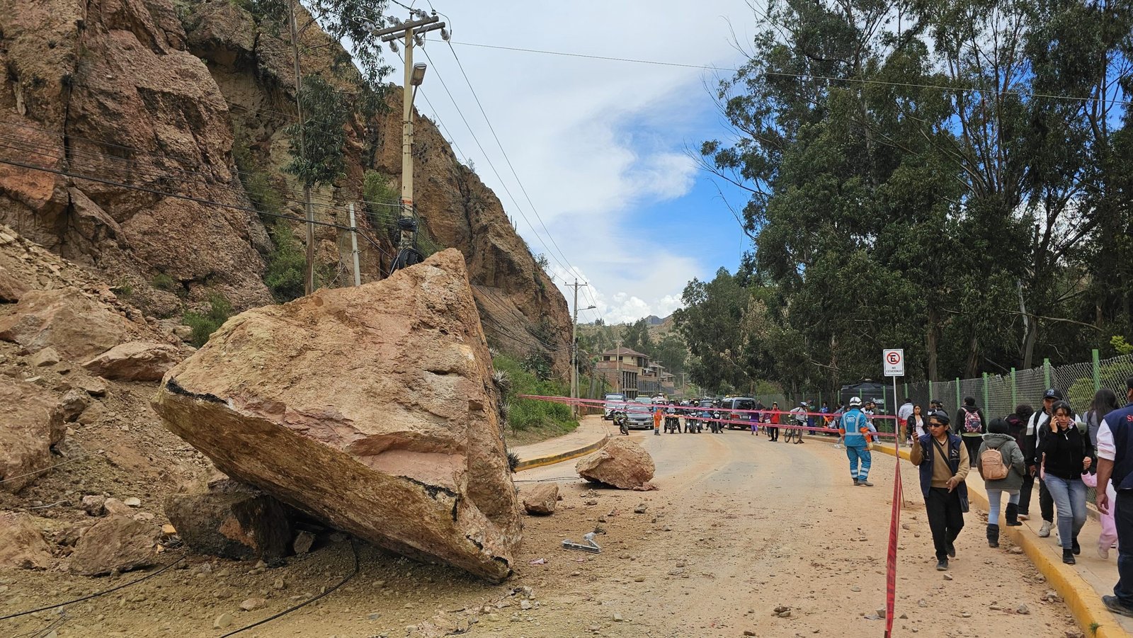 LA PAZ/In Extenso. Cierran la Avenida “Hernando Siles” del sector de Aranjuez y la Florida que une Mallasa y Mallasilla, Valencia y el sector sur de Río Abajo, debido de que manera repentina comenzó a caer piedras gigantes del cerro Colorado y por prevención los expertos decidieron corta el tráfico, cuando justamente es muy frecuente por el fin de semana.