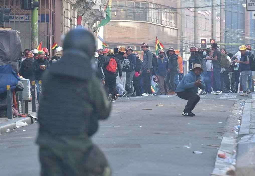 El uniformado declaró a los medios que “ha habido el uso de artefactos explosivos, justamente atacando al contingente policial que se encuentra resguardando Plaza Murillo; esa situación va en contra de la vida y la integridad de las personas; han intentado ingresar a Plaza Murillo haciendo uso de artefactos explosivos”.