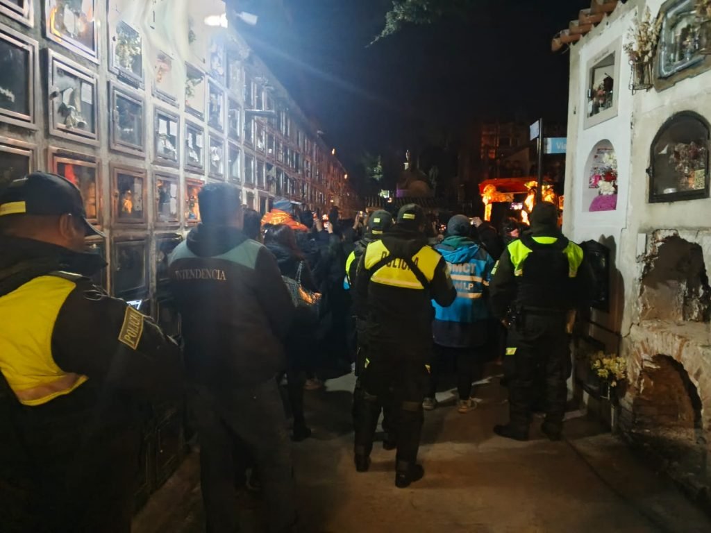 La Paz/IN EXTENSO.- La comuna paceña en coordinación con la Policía Boliviana, desplegó un amplio operativo de control durante el evento «Una Noche en el Cementerio – Añejerías Paceñas», para regular el ingreso y salida de los visitantes, evitar el consumo de bebidas alcohólicas y mantener el orden en el principal camposanto de la ciudad.