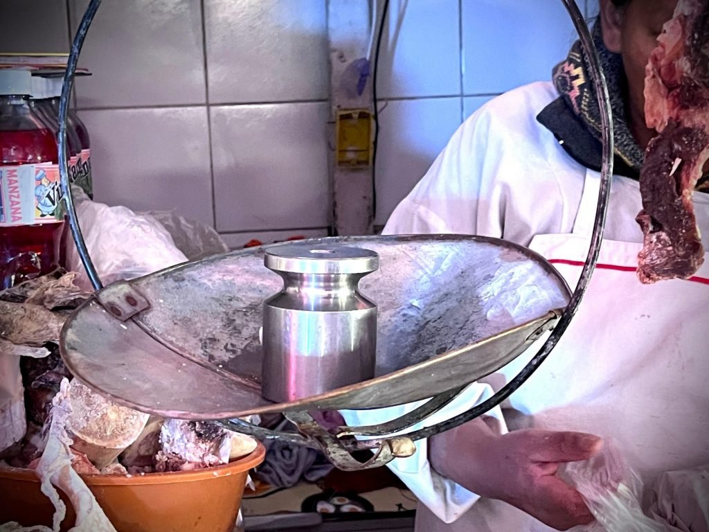 La Paz/IN EXTENSO.- En la galería techada del mercado Villa Fátima, el aire se mezcla con el aroma metálico de la carne fresca y el bullicio incesante de compradores y caseras. Entre los pasillos, el ingeniero Nelson Quispe Vargas, encargado de Defensa del Consumidor de la Intendencia Municipal, recorre puesto por puesto, portando una pequeña pesa metálica que brilla bajo la luz artificial. Es la pesa patrón, el instrumento que delata si una balanza miente.