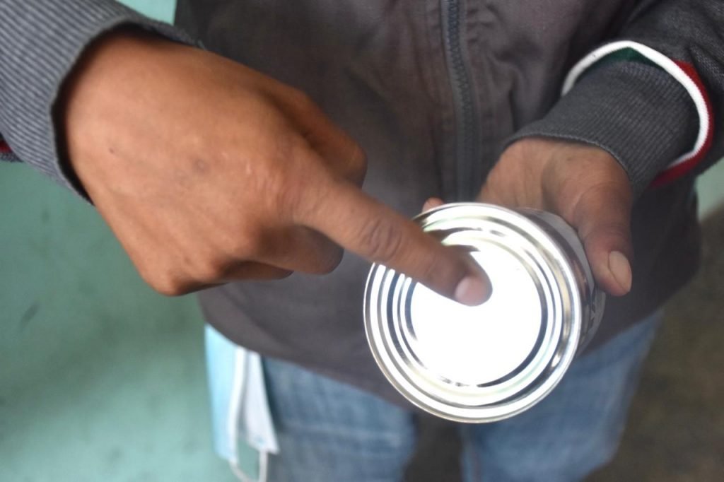 El técnico municipal explicó que las latas de la leche original tienen el nombre de la marca en alto relieve en la parte superior, una R en la etiqueta y el gramaje es de 390 y no de 395, como se ve en los productos falsos.