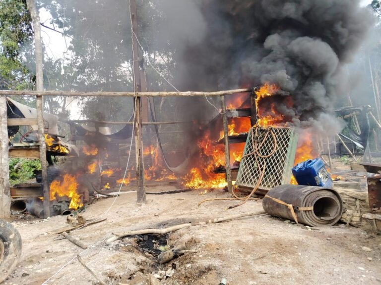 Beni/IN EXTENSO.- La Autoridad Jurisdiccional Administrativa Minera (AJAM), en coordinación con la Armada Boliviana, se desmantelaron un sofisticado centro de explotación ilegal de oro en el sector Mandarinas del Cerro San Simón, a orillas del río Iténez, en el departamento de Beni.