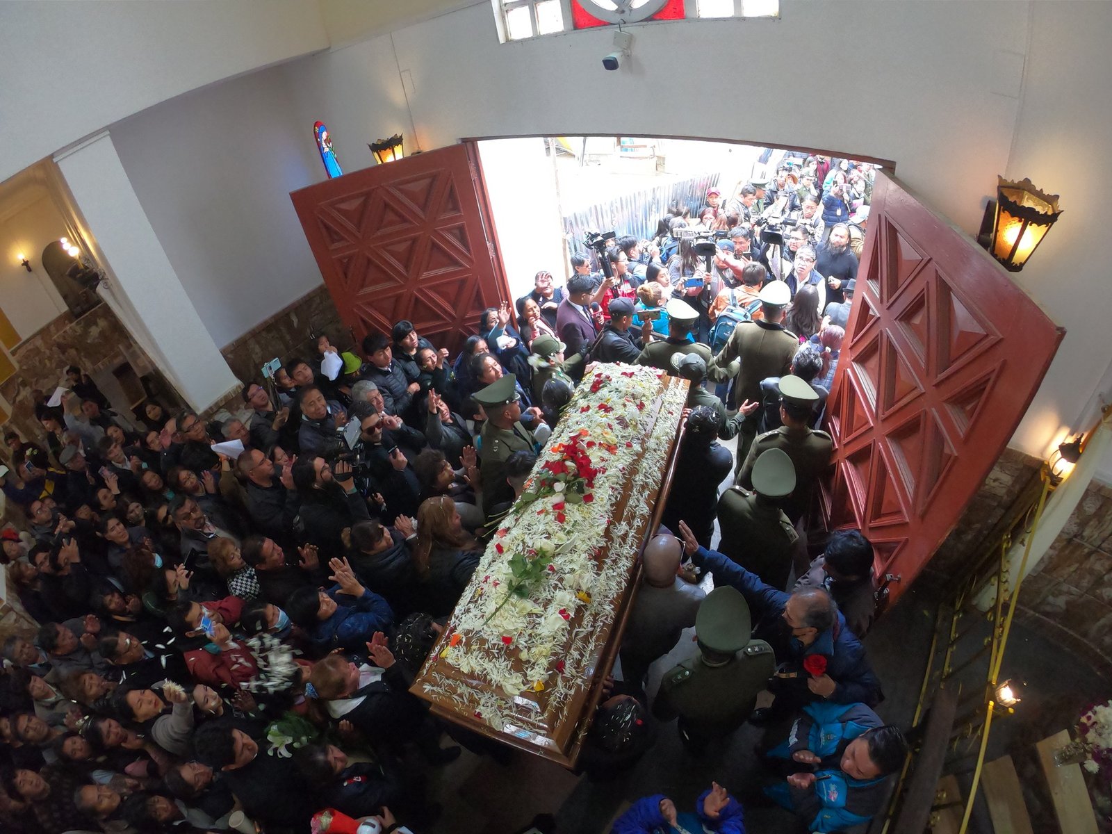 El cortejo fúnebre de David Santalla recorrió algunas calles céntricas paceñas hasta llegar a la Catedral Metropolitana “Nuestra Señora de La Paz” para la misa de cuerpo presente.