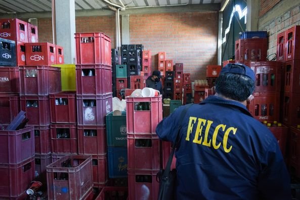 Se encontraron varias cajas de cerveza nacional que era comercializado en restaurantes, pensiones, discotecas y otros lugares nocturnos. En el operativo se aprehendió al dueño del predio, quien enfrenta cargos por falsificación y enriquecimiento ilícito. PAN Noticias.