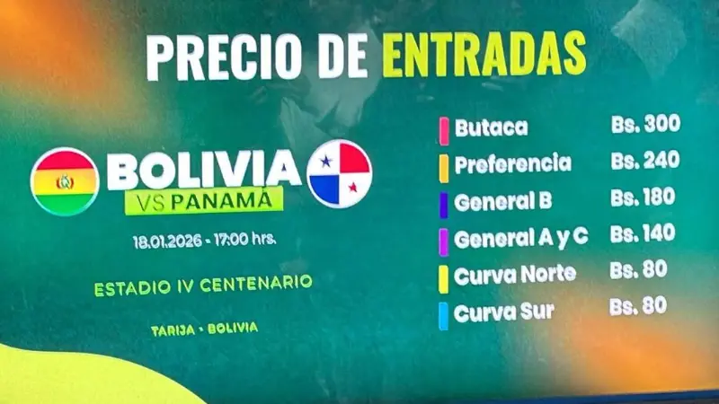 La Paz/D´BOLEA.-La Federación Boliviana de Fútbol (FBF) de manera oficial, dio a conocer los precios de las entradas para el encuentro amistoso que disputará la selección nacional ante el combinado de Panamá, el 18 de enero en el estadio IV Centenario de Tarija.