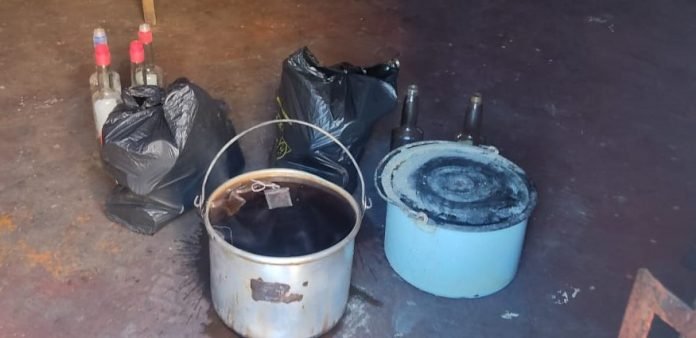 También se decomisó bidones, ollas en mal estado, botellas de ron adulterado que aparentemente servían para preparar una variedad de ponches.