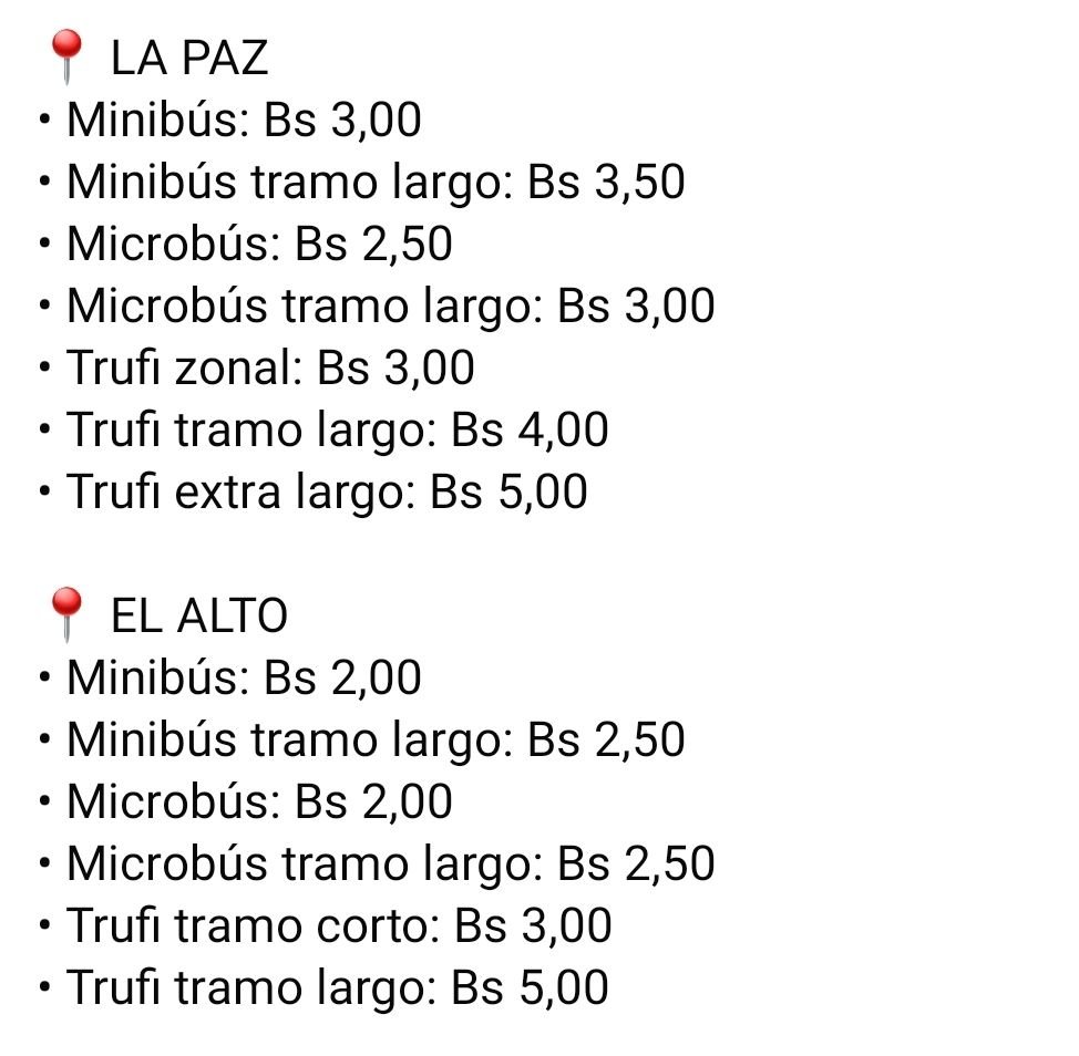 La Paz/IN EXTENSO.- Autotridades y transportistas, acordaron incrementar el precio del pasaje del transporte público la cual rige desde este miércoles 24 de diciembre, pero de manera temporal, ya que se espera los estudios técnico que definirán el precio final de los pasajes a los distintos sectores paceños y alteños.