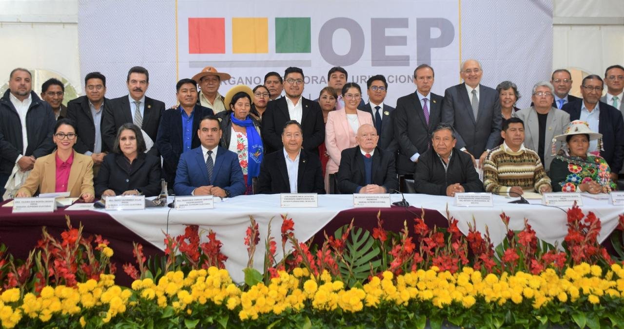 - El Presidente del Estado Plurinacional, el Vicepresidente del Estado Plurinacional, el presidente de la Cámara de Senadores, el presidente de la Cámara de Diputados y los representantes de las organizaciones políticas y alianzas expresan su respaldo pleno al Tribunal Supremo Electoral en todas las acciones que se ejecuten para garantizar las elecciones nacionales 2025 en el marco de la transparencia e integridad electoral.