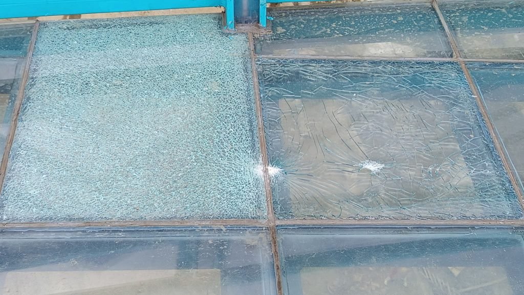 El área fue cerrada por algunos días para ejecutar los arreglos, ya se retiraron los vidrios dañados, se los repuso y ahora se espera el secado de la silicona estructural.