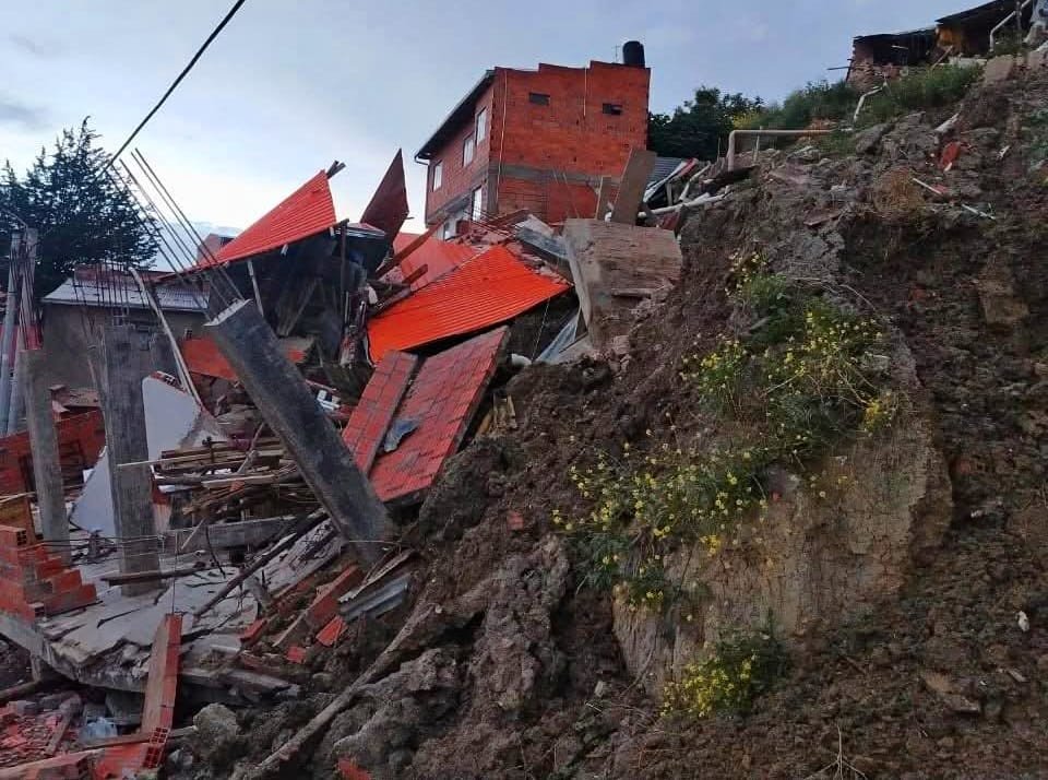 Es sólo esta parte que hay un desajuste y eso ha generado que colapse de manera total toda esta vivienda. Hay dos viviendas que han colapsado parcialmente y una cuarta más que está afectada. Se ha hecho ya la notificación para que se evacúe a las familias. Son seis familias en total que han sido ya notificadas y se han evacuado”, informó a la prensa el director de Gobernabilidad de la Alcaldía, Gonzalo Barrientos.