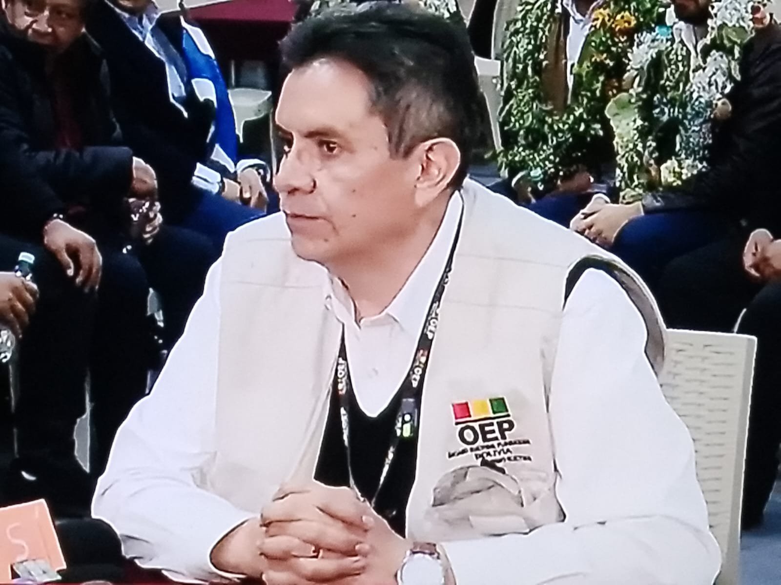 El secretario de Cámara del Tribunal Supremo Electoral (TSE), Luis Fernando Arteaga, que informó que la candidatura del senador Andrónico Rodríguez fue registrada formalmente por la alianza Popular (integrada por el Movimiento Tercer Sistema y otras organizaciones), pero su habilitación definitiva ha quedado en suspenso.