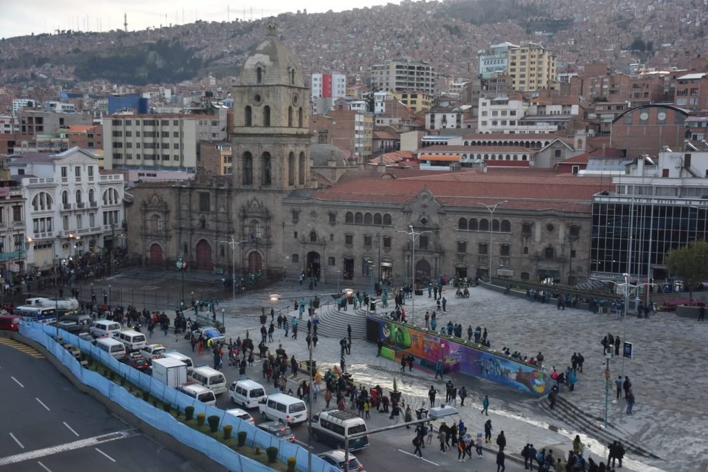 A un costado, la iglesia de San Francisco —uno de los íconos más representativos de la ciudad— sigue marcando el pulso de este espacio. Su presencia no solo le da identidad a la plaza, sino que refuerza su valor histórico, cultural y espiritual, convirtiéndola en un punto de referencia tanto para los paceños como para quienes visitan La Paz.
