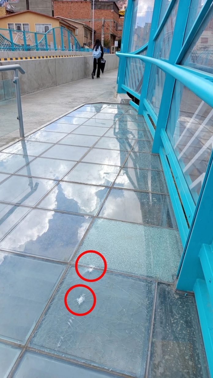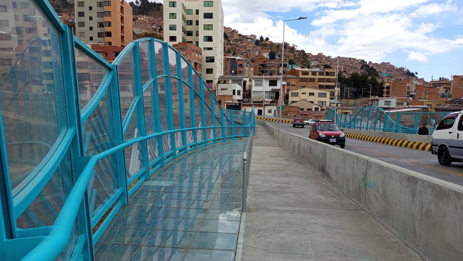 La Paz/IN EXTENSO.- La comuna paceña presentará la denuncia a la Fuerza Espacial de Lucha Contra el Crimen (Felcc) para identificar al motociclista que se parqueo en pleno puente y destruyo los vidrios del piso y sancionar por daños a la propiedad pública.